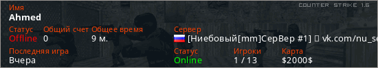Последний раз был в сети Вчера Игрок с таким ником замечен на 31 сервере