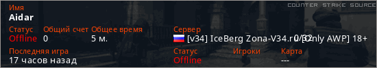 Играет на Counter Strike Source сервере. Страна: РоссияПервый раз замечен 00:00 20.04.2026