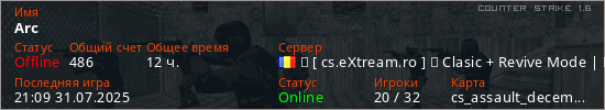 Последний раз был в сети 21:09 31.07.2025 Игрок с таким ником замечен на 8 серверах