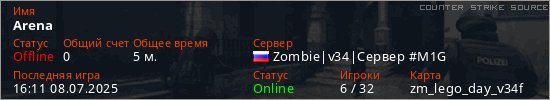 Играет на Counter Strike Source сервере. Страна: РоссияПервый раз замечен 16:08 08.07.2025