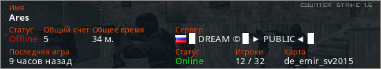 Последний раз был в сети 8 часов назад Игрок с таким ником замечен на 34 серверах