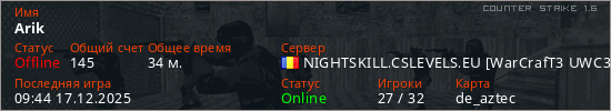 Играет на Counter Strike 1.6 сервере. Страна: РумынияПервый раз замечен 01:41 12.09.2025