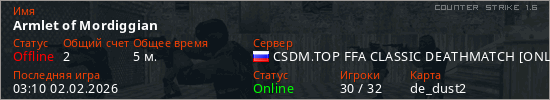 Играет на Counter Strike 1.6 сервере. Страна: РоссияПервый раз замечен 02:34 02.02.2026