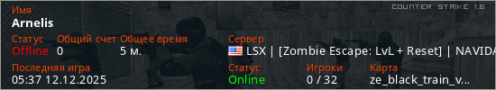 Играет на Counter Strike 1.6 сервере. Страна: СШАПервый раз замечен 05:32 12.12.2025
