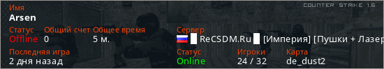 Последний раз был в сети 2 дня назад Игрок с таким ником замечен на 31 сервере