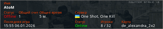 Играет на Counter Strike 1.6 сервере. Страна: УкраинаПервый раз замечен 15:47 06.01.2026