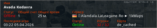 Играет на Counter Strike 1.6 сервере. Страна: ГерманияПервый раз замечен 23:34 01.04.2026