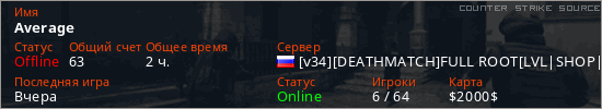 Играет на Counter Strike Source сервере. Страна: РоссияПервый раз замечен 21:11 11.03.2026