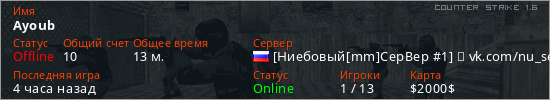 Последний раз был в сети 2 часа назад Игрок с таким ником замечен на 10 серверах