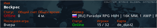Играет на Counter Strike Global Offensive сервере. Страна: РоссияПервый раз замечен 18:16 04.03.2026