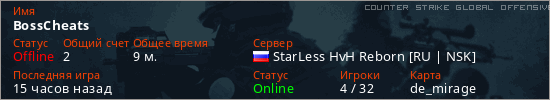 Играет на Counter Strike Global Offensive сервере. Страна: РоссияПервый раз замечен 15:28 19.12.2025