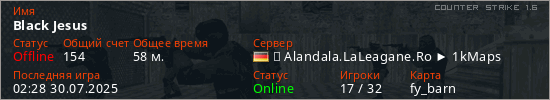 Играет на Counter Strike 1.6 сервере. Страна: ГерманияПервый раз замечен 09:29 28.07.2025