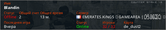 Последний раз был в сети Вчера Игрок с таким ником замечен на 2 серверах