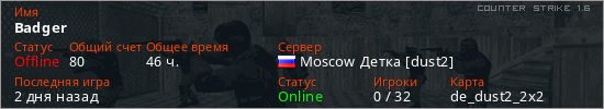 Последний раз был в сети 2 дня назад Игрок с таким ником замечен на 4 серверах
