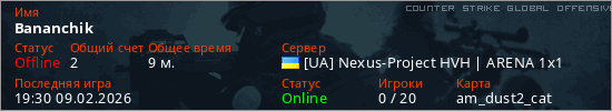 Играет на Counter Strike Global Offensive сервере. Страна: УкраинаПервый раз замечен 19:09 09.02.2026