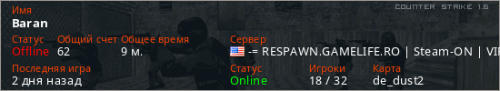 Играет на Counter Strike 1.6 сервере. Страна: СШАПервый раз замечен 08:37 19.01.2026