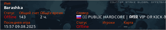 Играет на Counter Strike Global Offensive сервере. Страна: РоссияПервый раз замечен 03:45 18.07.2025