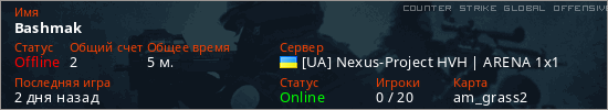 Играет на Counter Strike Global Offensive сервере. Страна: УкраинаПервый раз замечен 23:05 01.02.2026