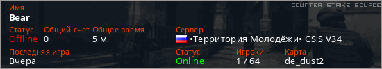 Последний раз был в сети Вчера Игрок с таким ником замечен на 32 серверах