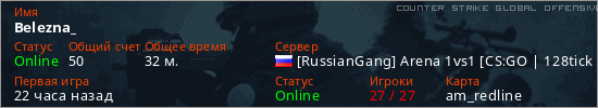 Играет на Counter Strike Global Offensive сервере. Страна: РоссияПервый раз замечен 21:55 18.01.2026