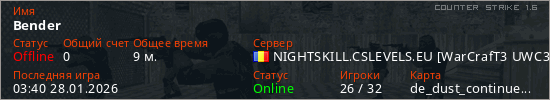 Играет на Counter Strike 1.6 сервере. Страна: РумынияПервый раз замечен 02:08 28.01.2026