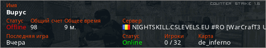 Играет на Counter Strike 1.6 сервере. Страна: РумынияПервый раз замечен 20:03 21.02.2026