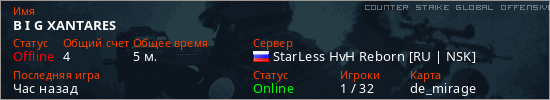 Играет на Counter Strike Global Offensive сервере. Страна: РоссияПервый раз замечен 23:23 16.02.2026