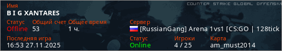 Играет на Counter Strike Global Offensive сервере. Страна: РоссияПервый раз замечен 08:46 25.01.2025