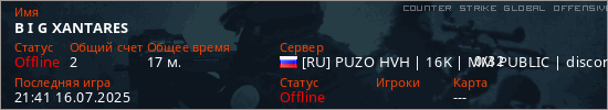 Играет на Counter Strike Global Offensive сервере. Страна: РоссияПервый раз замечен 03:14 12.07.2025