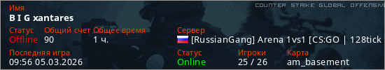 Играет на Counter Strike Global Offensive сервере. Страна: РоссияПервый раз замечен 17:51 28.02.2026