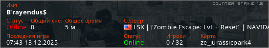 Играет на Counter Strike 1.6 сервере. Страна: СШАПервый раз замечен 05:17 11.12.2025