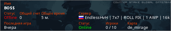 Играет на Counter Strike Global Offensive сервере. Страна: РоссияПервый раз замечен 16:16 06.03.2026