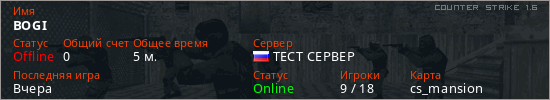 Последний раз был в сети Вчера Игрок с таким ником замечен на 9 серверах