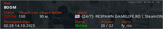 Играет на Counter Strike 1.6 сервере. Страна: СШАПервый раз замечен 17:55 03.04.2025