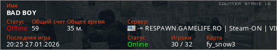 Играет на Counter Strike 1.6 сервере. Страна: СШАПервый раз замечен 21:36 24.01.2026