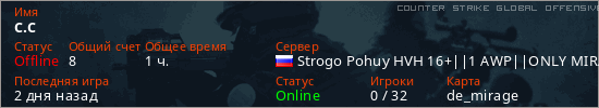 Играет на Counter Strike Global Offensive сервере. Страна: РоссияПервый раз замечен 10:13 09.12.2025
