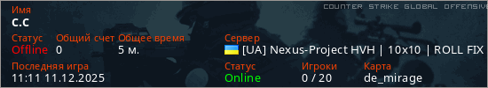 Играет на Counter Strike Global Offensive сервере. Страна: УкраинаПервый раз замечен 11:06 11.12.2025