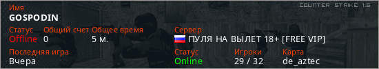 Последний раз был в сети Вчера Игрок с таким ником замечен на 6 серверах