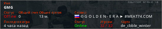 Играет на Counter Strike 1.6 сервере. Страна: РоссияПервый раз замечен 15:12 08.08.2025