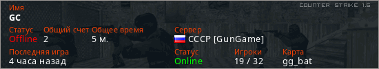 Играет на Counter Strike 1.6 сервере. Страна: РоссияПервый раз замечен 13:12 29.12.2025