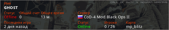 Играет на Call of Duty 4: Modern Warfare сервере. Страна: РоссияПервый раз замечен 21:05 09.11.2025