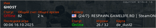 Играет на Counter Strike 1.6 сервере. Страна: СШАПервый раз замечен 18:45 29.01.2025