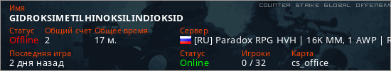 Играет на Counter Strike Global Offensive сервере. Страна: РоссияПервый раз замечен 22:40 01.12.2025
