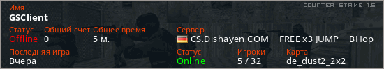Последний раз был в сети Вчера Игрок с таким ником замечен на 46 серверах