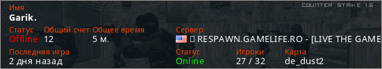 Играет на Counter Strike 1.6 сервере. Страна: СШАПервый раз замечен 18:53 25.03.2026