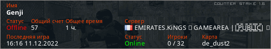 Последний раз был в сети 16:16 11.12.2022 Игрок с таким ником замечен на 5 серверах