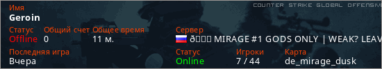 Играет на Counter Strike Global Offensive сервере. Страна: РоссияПервый раз замечен 22:01 01.04.2025