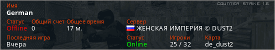 Последний раз был в сети Вчера Игрок с таким ником замечен на 24 серверах