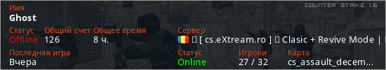 Играет на Counter Strike 1.6 сервере. Страна: РумынияПервый раз замечен 23:51 24.10.2024