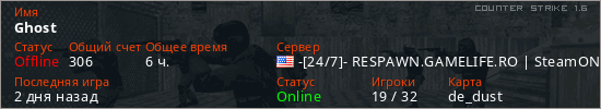 Играет на Counter Strike 1.6 сервере. Страна: СШАПервый раз замечен 02:06 12.02.2025
